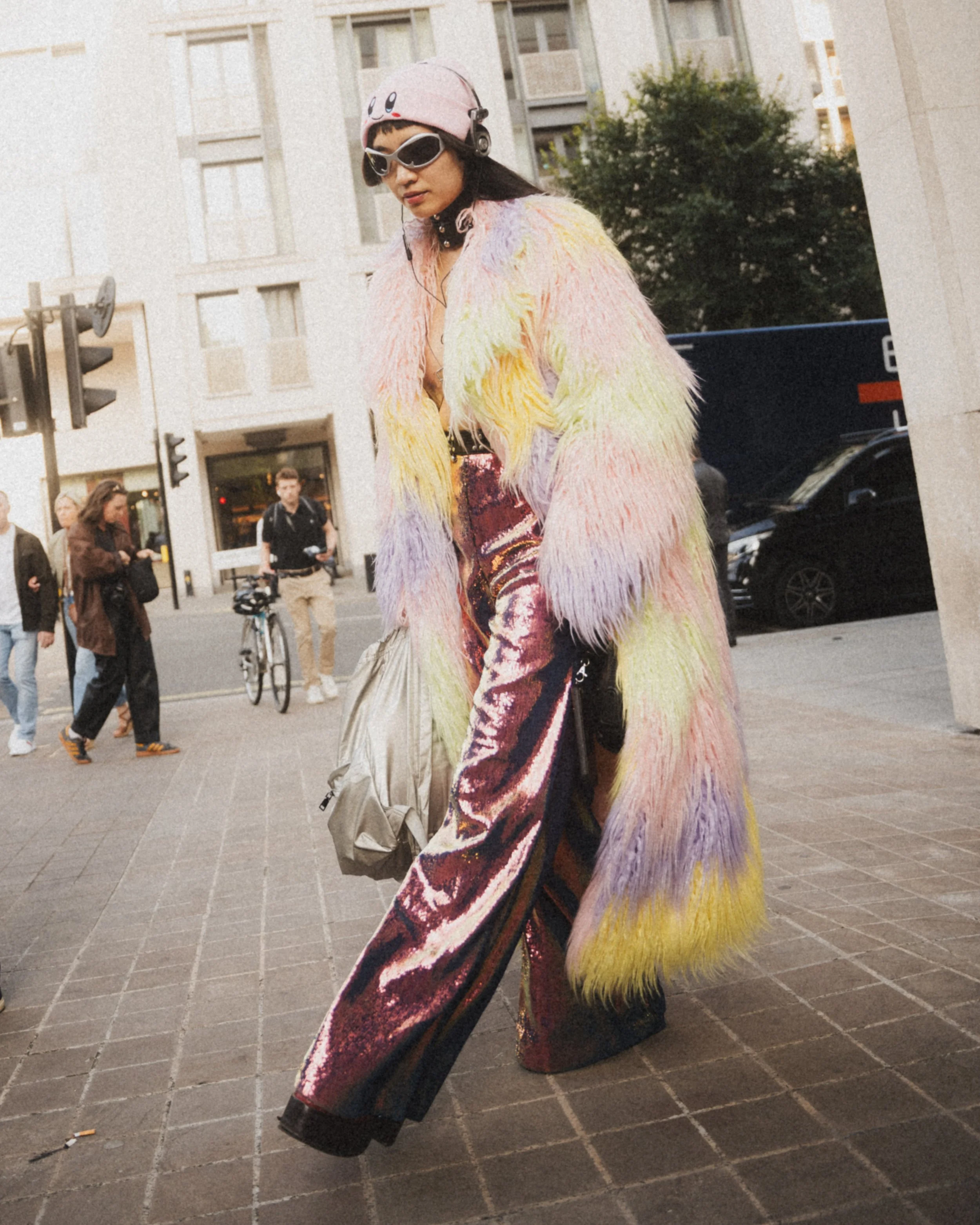 Street-style photography during London Fashion Week, highlighting emerging trends, personalities, and authentic expressions in the fashion scene.